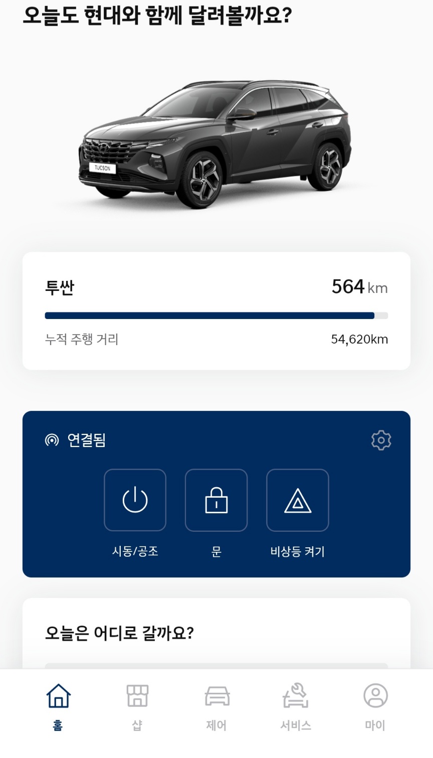 차량 상태 및 원격제어, 차량 용품 구매 서비스, 정비예약 등 많은 정보를 하나의 앱으로 제공하니 장점은 확실히 있는듯합니다.