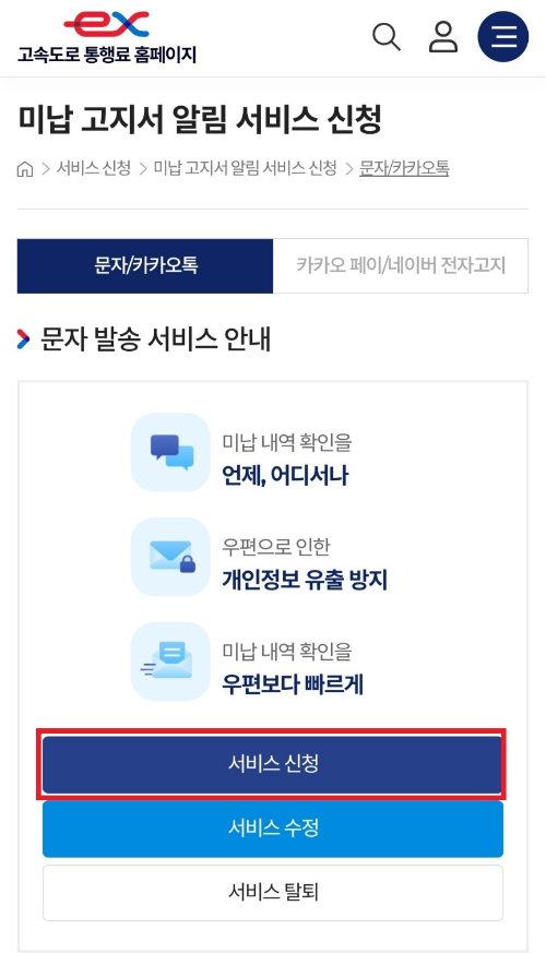 3. 통행료 미납 알림 서비스 신청