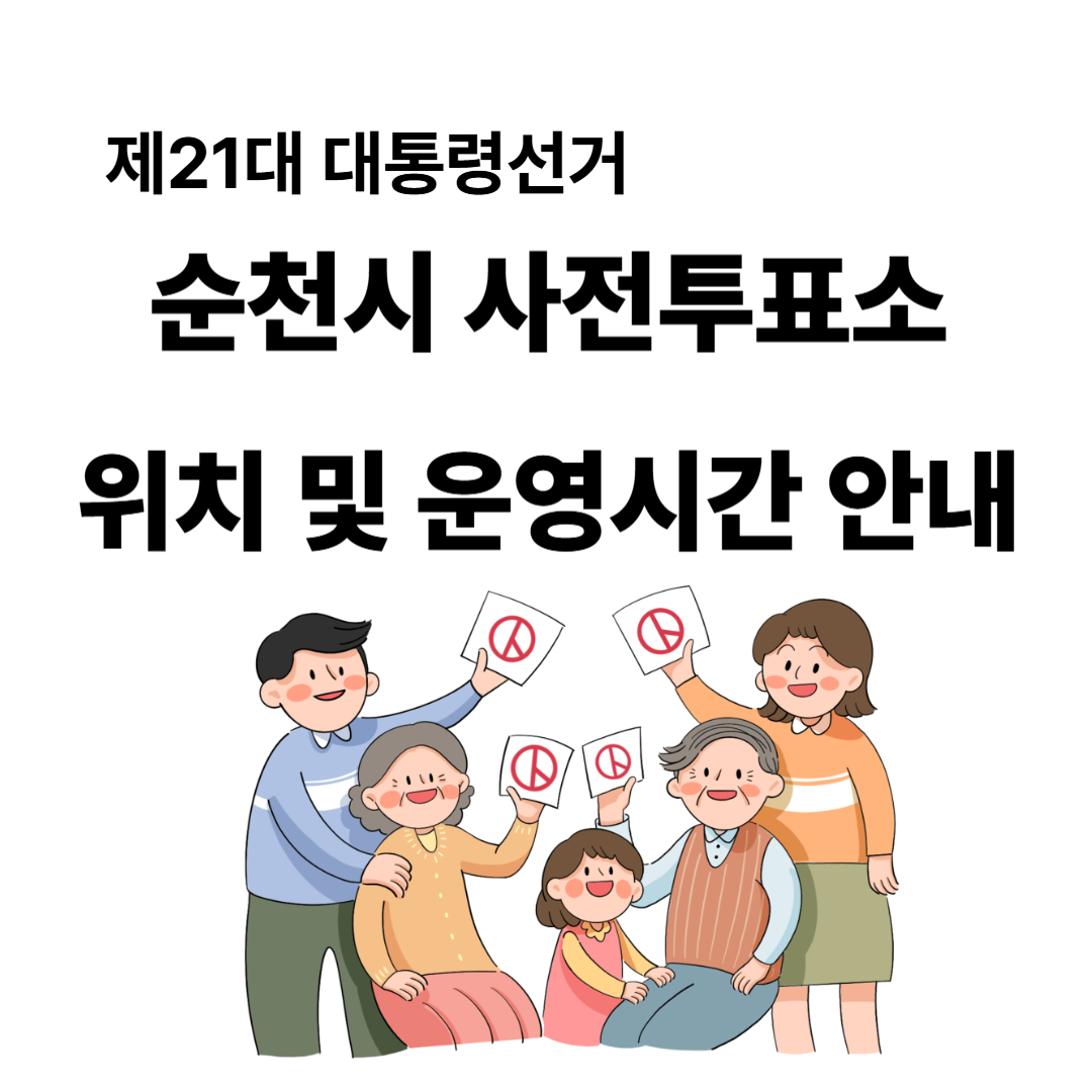 제21대 대통령 선거 사전투표는 5월 29일(목) ~ 5월 30일(금)까지, 오전 06시부터 오후 18시까지 진행합니다. 사전투표는 전국 어디에서나 가능하므로, 순천시 내에서도 편리한 장소에서 투표하실 수 있습니다.