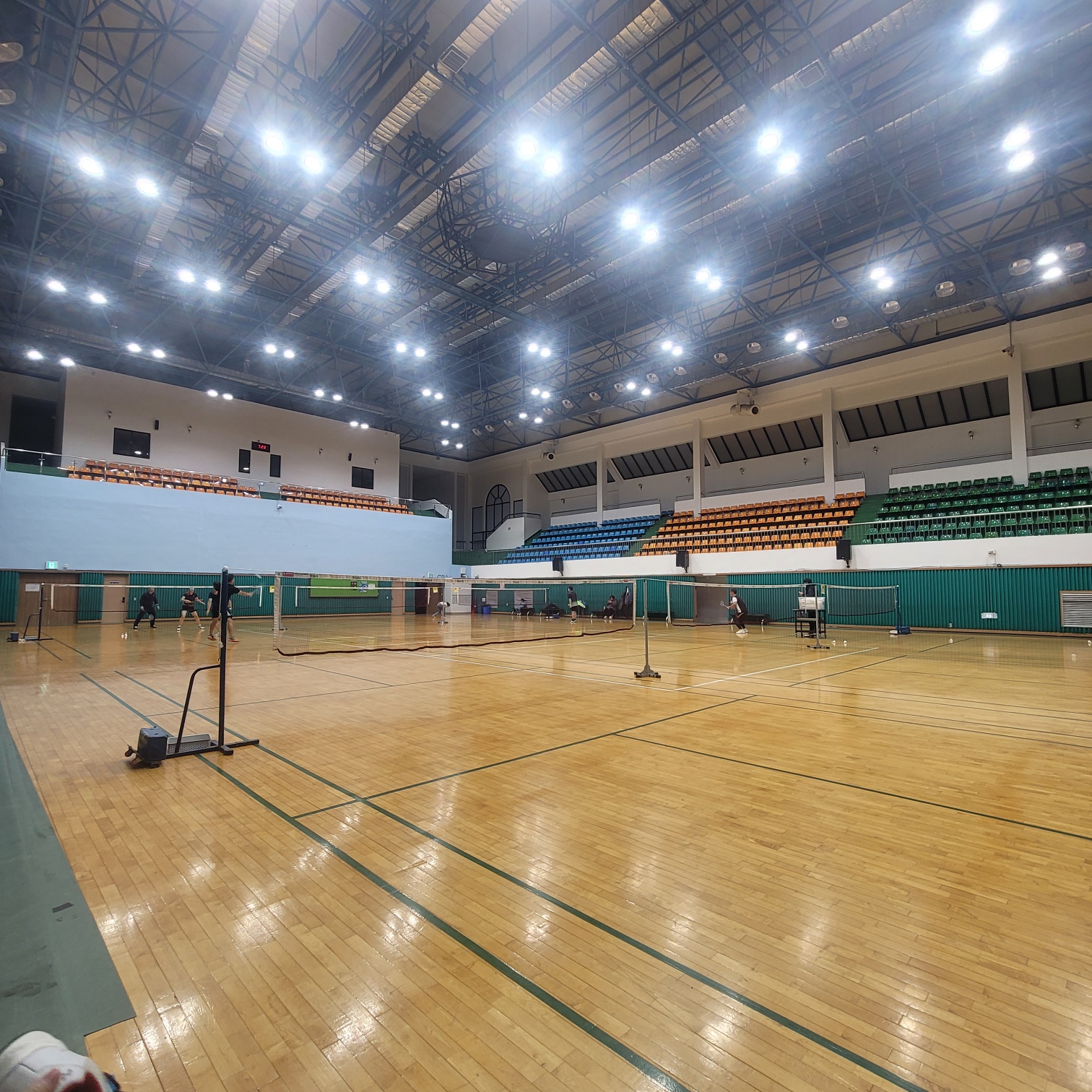 평일 야간(19:00 ~ 21:00) 이용한 사진입니다. 체육관 실내는 배드민턴 네트 6개 설치되어 있습니다.
