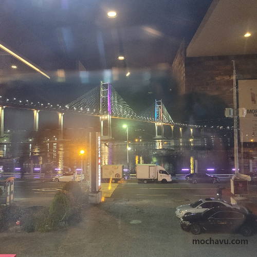마창대교뷰가 보이는 해안을 따라 왕복1차선으로 도로가 쭈욱 있는데요. 방지턱도 높지 않고, 신호등도 없어서 해안도로를 따라 운전하기 편해요!! 보통 저녁에는 차가 많기도 하지만 여유롭게 다녀오시고 싶다면 9시쯤 넘어서 가시면 조금 널널해요~