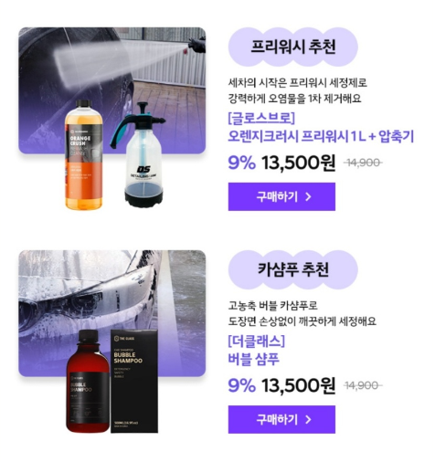 • 혜택 : 세차용품 최대 54% 할인
