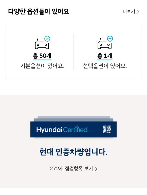 10월 24일 판매시작으로 아직은 매물이 적은 상태입니다. 이제 시작단계이니 앞으로 더 많은 매물들이 올라올 것으로 보이는데요. 현재까지 준비된 차량 확인은 "현대자동차 인증중고차 사이트"에서 쉽게 확인하실 수 있습니다.
