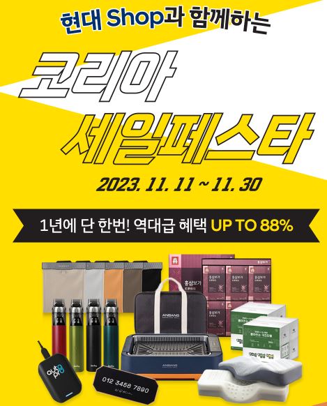 현대 Shop에서 코리아 세일페스타와 더불어 1년에 단 한번 있는 역대급 혜택 이벤트를 진행하고 있는데요. 어떤 혜택들이 있는지 알아보겠습니다.