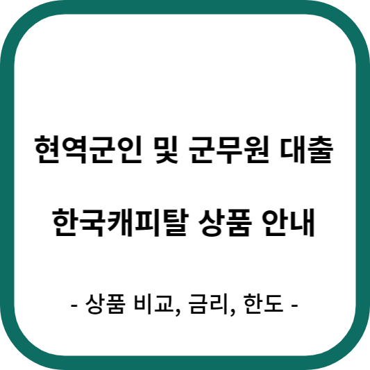 한국캐피탈 현역군인, 군무원 대상 대출상품들의 금리와 상환기간, 한도에 대해 알아보겠습니다.