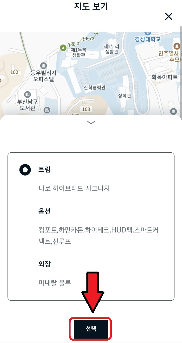7. 시승차량의 트림, 옵션, 외장 확인 후 선택