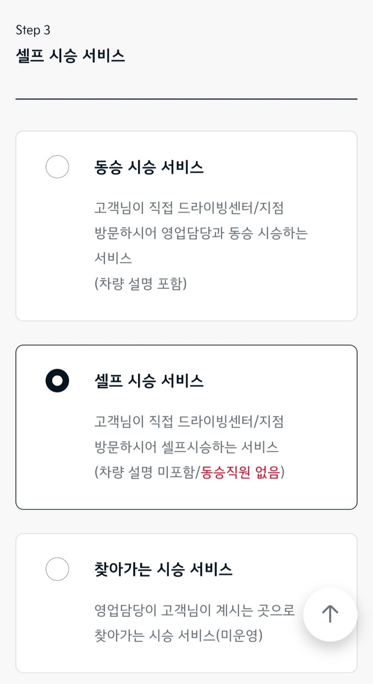 8. 시승 서비스 방식에 클릭