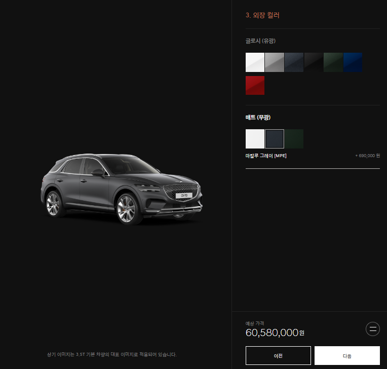제네시스 공식홈페이지 - 2024 GV70 모의견적 서비스
