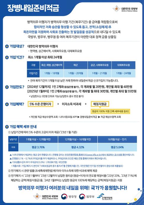 2025 장병내일준비적금 매칭지원금 지급일 및 혜택 알아보자!