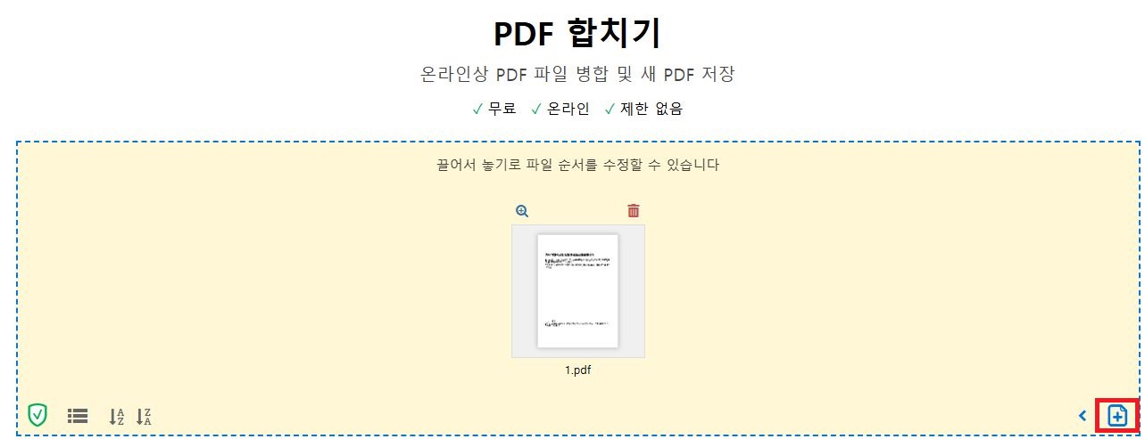 위와 같이 PDF TOOL에서 간편하게 파일 합치기 가능합니다. 기타 다양한 편집 기능이 있어 간편하게 사용하실 수 있습니다.